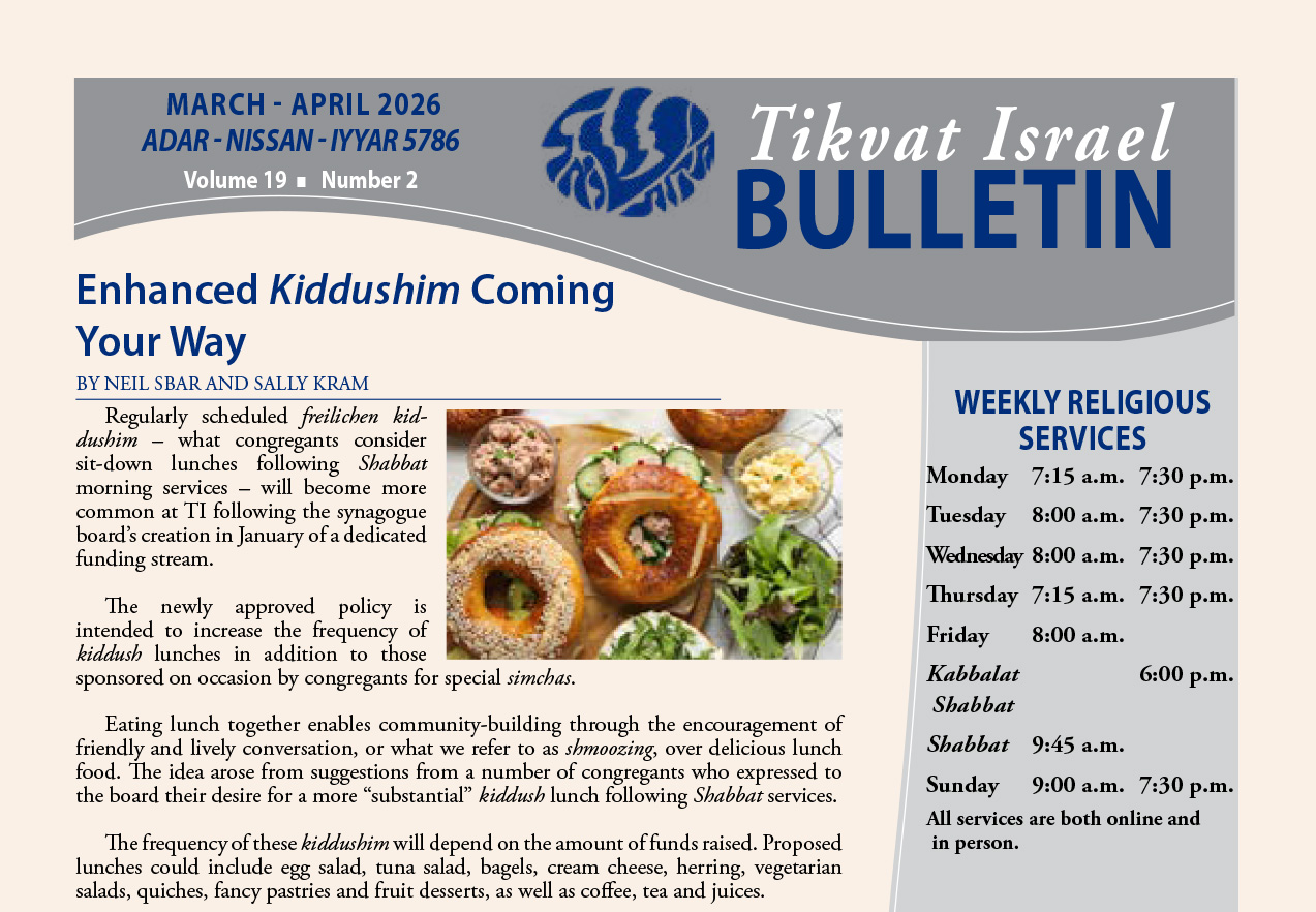 If you’re looking for a warm and welcoming synagogue community that values friendship, Jewish learning and mitzvot, we invite you to learn more about the many benefits of membership at Tikvat Israel.