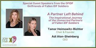 Join us for an evening with Tamar Heimowitz-Richter (Co-Founder and Chair), and Adi Alon Sheinberg (CEO) of GFIDF-the only organization in Israel dedicated to supporting the unmarried partners of fallen IDF soldiers. Tamar and Adi will be joined by Susi Doring-Preston, Kim Muñoz Salazar, Adi Tal-Cohen, Einav Tzemach, and Nevo Yanai, all bereaved partners.