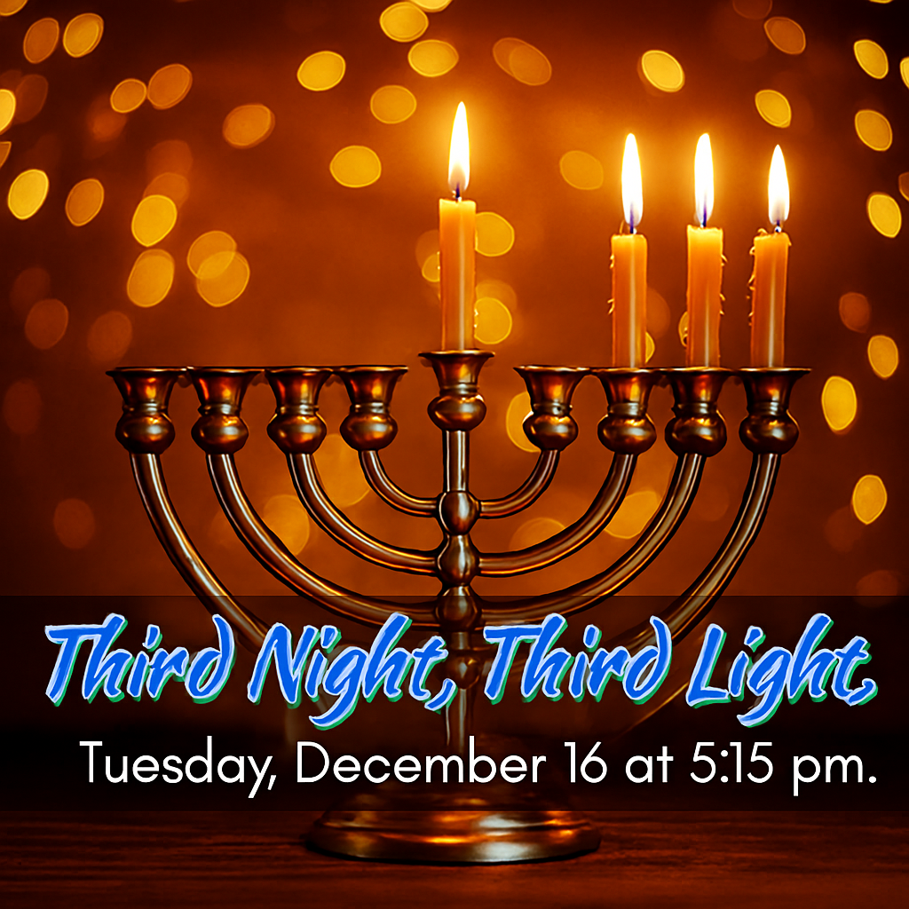 Join our ECC and Netivot Religious School families in lighting Chanukkah candles on Tuesday, December 16 at 5:15 pm in the lobby. We will join our voices together in blessing and in song and enjoy a Chanukkah treat. All are welcome, and please feel free to bring your own menorah and candles to light.