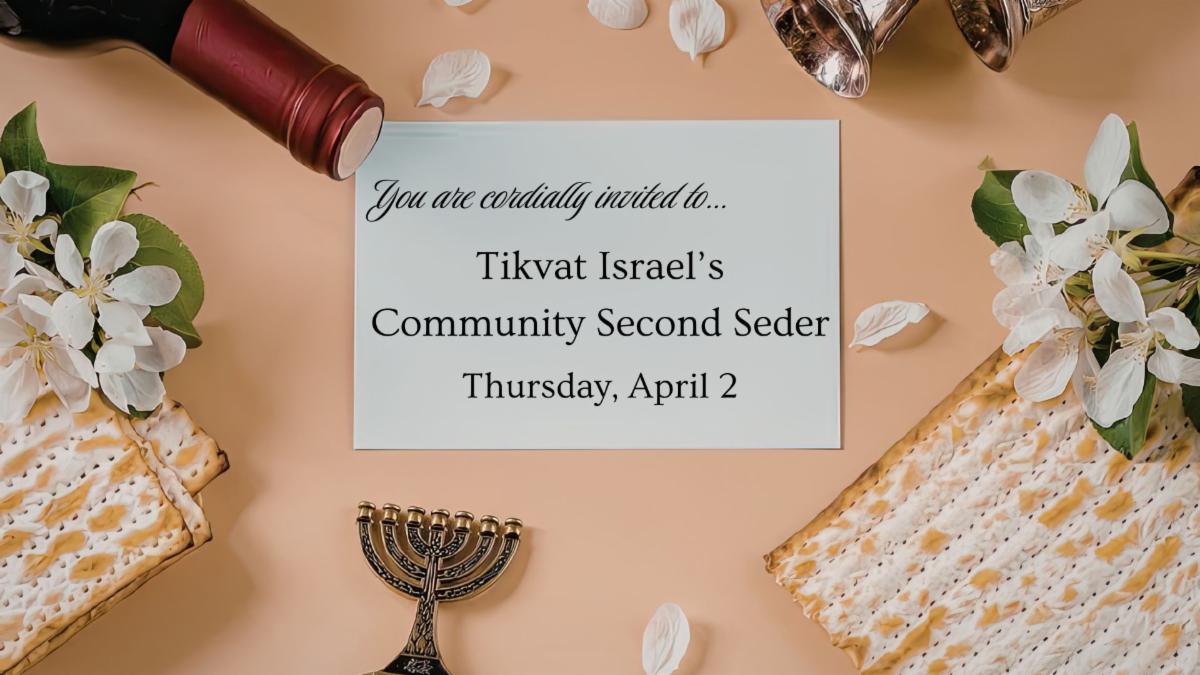 Make your plans now to attend Tikvat Israel’s Third Annual Community Second Seder on Thursday, Apr. 2. We’ll gather together for a wonderful meal as we retell the biblical story of our Exodus from Egypt. Click here to sign up.
