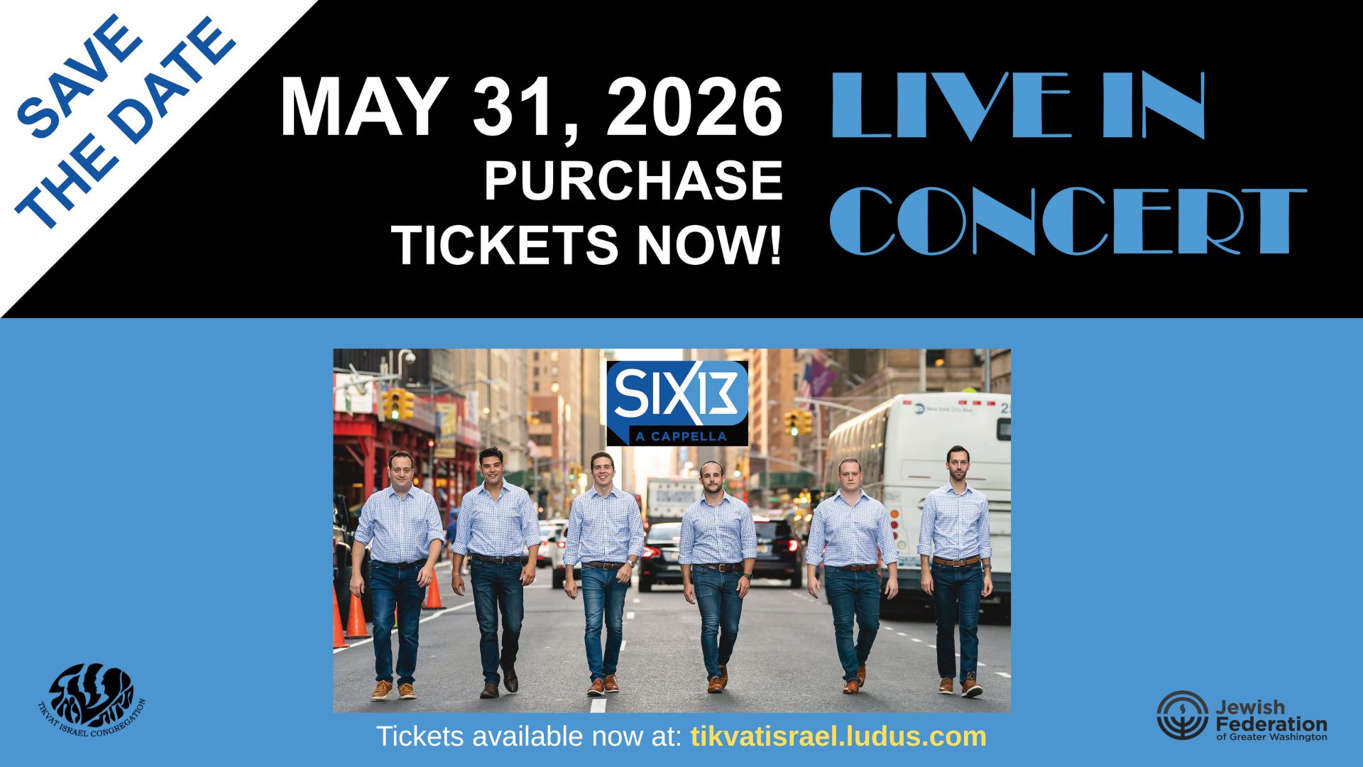 This year’s concert will be highlighted by a performance by Six13, a widely recognized a cappella group. This important event will help support Tikvat Israel as well as its Jewish education programs for children. Sponsorship opportunities are available now Six13 is a groundbreaking, six-man a cappella vocal band that is bringing an unprecedented style and Continue Reading »